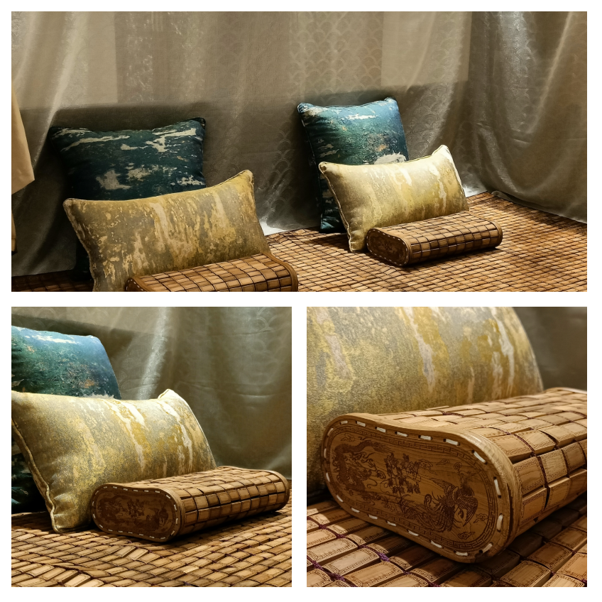 枕头在人们的睡眠中占有重要地位,合适的枕头能让睡眠变得更加香甜,但若长期使用不适合的枕头会造成一系列慢性劳损,甚至发展成颈椎病。此款枕头以Taxus spp为材,软硬适中,闻之有淡香。其木香成分可促进大脑皮质的兴奋度,帮助放松神经,从而改善睡眠。