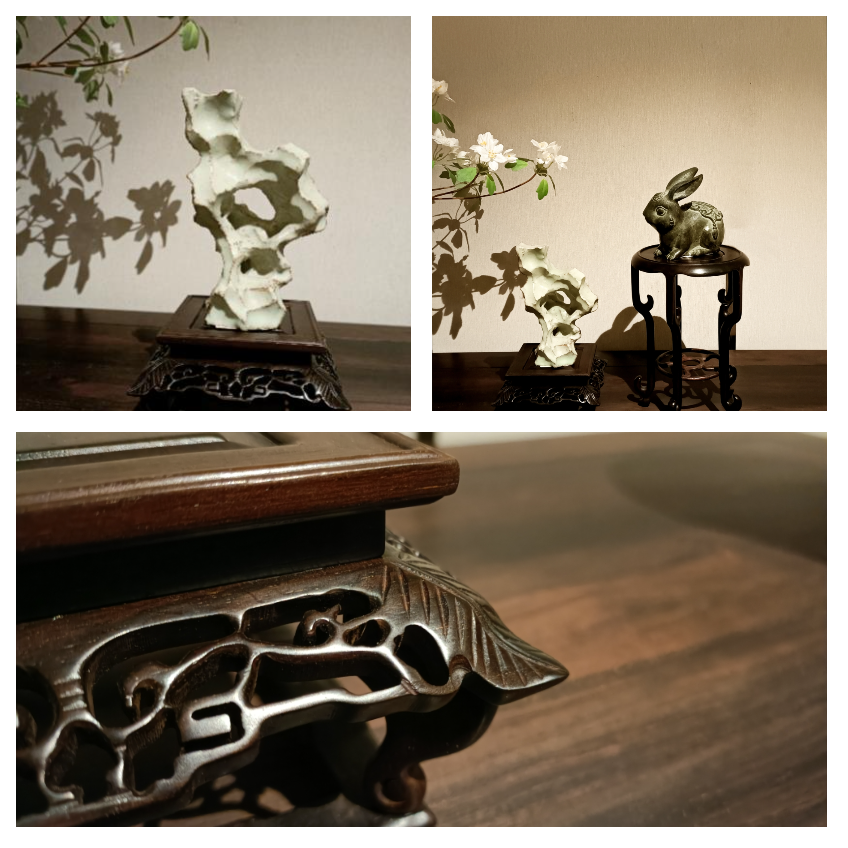 红木底座并不是单纯的一块木板即可胜任,虽说是其名为底座,但本身结构精巧且木材珍稀,已经可以单独作为收藏品使用,而作为底座之时,也不会过于影响所摆置的文玩珍宝。