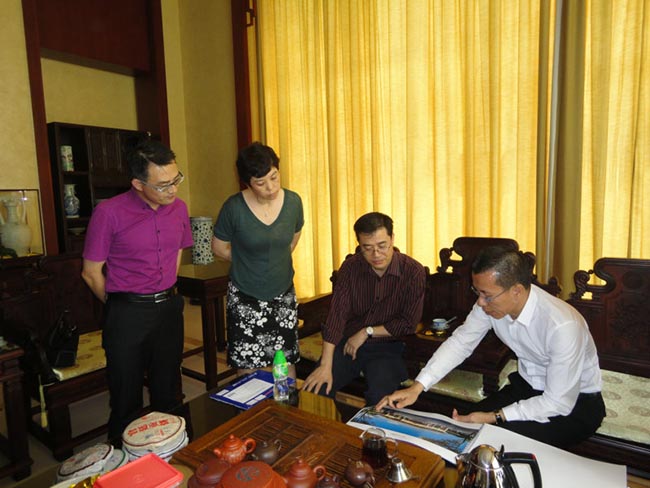 王会长此行是为我司日前申报的“广州市著名商标”一事进行实地考察。考察人员一行先后来到我司艺术馆、工艺馆和生产车间进行参观,王会长对我司优良的产品品质、先进的手工工艺表示赞赏。在陈董办公室,陈董向王会长介绍了我司目前产业升级情况和今后发展方向。永华家具创建于1986年,经过二十五年辛勤耕耘,现已发展成为一家拥有近五万平方米厂房面积的专业红木家具生产企业,成为中国最好的红木家具品牌之一。公司凭着优秀的人才队伍,超前的经营策略,科学的管理模式,2001年至2004年,永华家具连续四年获得番禺区委区政府颁发的《文明私营企业》称号;2008年,永华家具成为广州家具协会常务理事会理事和副会长单位;2009年,永华家具成为中国家具协会传统家具专业委员会副主任单位;2010年,永华家具成为中国家具协会第五届理事会常务理事单位;并于当年当选为“最具影响力中国红木家具十大品牌”。