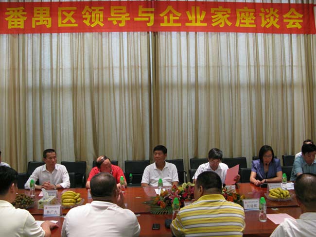 8月1日下午,由番禺区工商联组织的区领导与企业家座谈会在永华家具举行。会上,区工商联党组书记陈锦云总结了工商联近期工作,番禺区各位企业家在会上进行了自由交流,区政协主席谭应华、区长楼旭逵出席了会议并分别作了讲话。会议由区委统战部部长黎伟棠主持,永华家具董事长陈达强作为企业家参加了座谈会。
