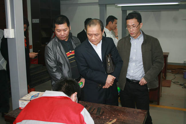 来宾认真观看永华员工雕刻操作