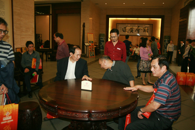 一路上,来宾认真聆听着杨经理的解说,仔细观赏着目所能及的一切,亲身体验着家具及工艺品的手感,并且积极询问着红木家具的相关知识。所到之处,均有他们流连的身影、惊叹的口吻和探索的眼神。在永华的中华第一柜前,他们驻足惊叹:“这就是中华第一柜。真大!”言语间透露出一种“早有耳闻”的熟悉感和“出乎意料”的惊喜之情。他们或是亲自探索中华第一柜的内部结构,或是仔细观赏柜门上悠游的云龙,或是阅览旁边的介绍牌,或是向杨经理询问。他们对红木的喜爱,在言行举止中显露无遗。