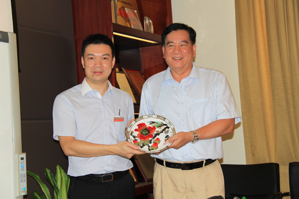 在参观完永华家具后,一场研讨会开始了,会议由副会长兼秘书长刘建民主持。在会上,永华家具副总经理邱志坤代表我司发表了关于企业发展、品牌建设的讲话,并代表公司接受了广州“三会”赠送的纪念品——广彩工艺品。副会长兼秘书长刘建民汇报了广州“三会”的工作情况,并指出此次“广州市优秀企业、广州市优秀企业家”活动,具有参与度提高、行业覆盖面广、行业代表性提高和民企参与度(占总数的52%)大幅提高的特点。最后,在座的各位名誉会长、高级顾问就广州“三会”和永华家具的相关工作,进行了互动交流。