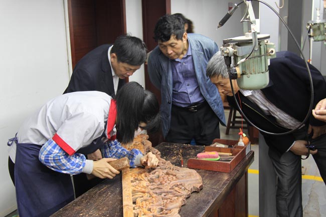 来宾参观永华家具雕刻工艺
