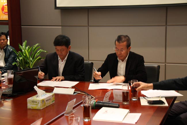 5点,在永华家具的会议室展开了一场联谊暨座谈交流会。会上,双方就两地的经济发展概况作了简要介绍,并交流了各自的成功经验,最后,永华家具董事长陈达强作为工商联执委会副主席代表番禺区工商联与贵州省独山县工商联签订了友好合作协议。