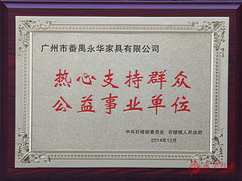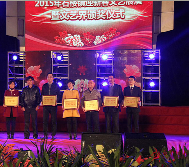 2015年1月16日晚,永华红木家具受邀参加“2015石楼镇迎新春文艺展演暨文艺界颁奖仪式”,并获得了“热心支持群众公益事业单位”荣誉称号。