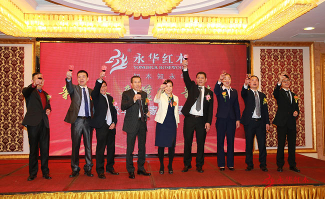 永华红木家具全体高层领导祝酒,祝福永华明天更加美好