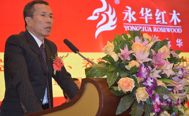 永华红木家具董事长陈达强发表讲话