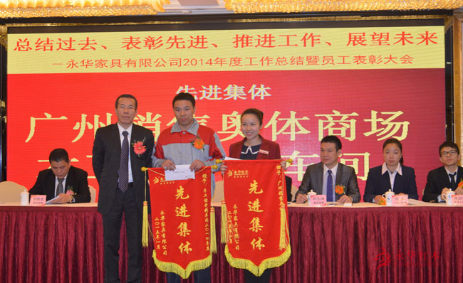 下午2点30分,永华红木家具2014年终总结大会在番禺大厦宴会厅隆重举行,公司董事长陈达强、财务邱小姐、总经理赖荣达、副总经理邱志坤、副总经理李维波等公司高层领导出席会议,并进行了2014工作总结、2015年度规划以及表彰大会。