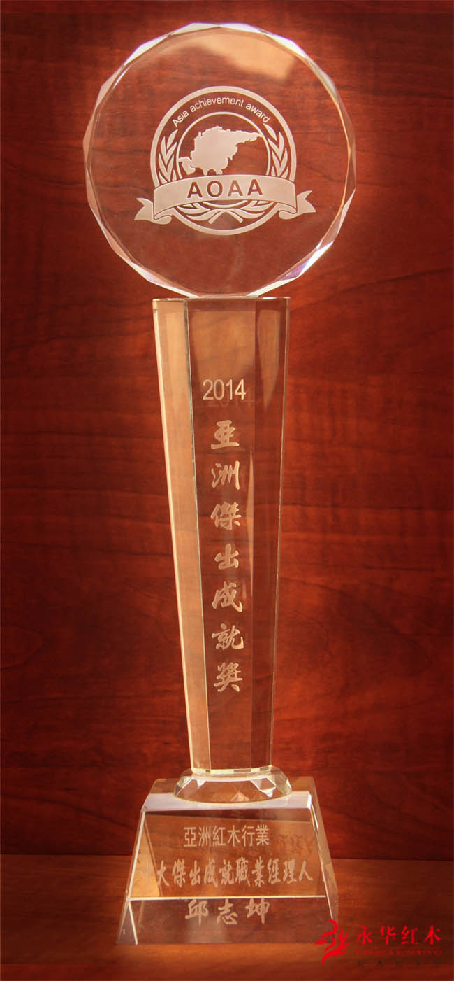 2014年12月18日,2014亚洲杰出成就艺术奖提名评选颁奖典礼、2014亚洲家具(红木)总评榜活动在香港特别行政区香港九龙百乐门宴会厅隆重举办。永华红木家具副总经理邱志坤先生出席了大会,永华红木家具获得了2014亚洲杰出成就奖“亚洲红木十大品牌”、永华红木家具董事长陈达强获得了2014亚洲杰出成就奖“亚洲红木十大杰出成就人物奖”、永华红木家具副总经理邱志坤获得了“亚洲红木行业十大杰出成就职业经理人”。