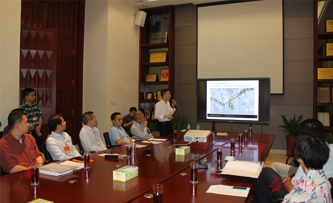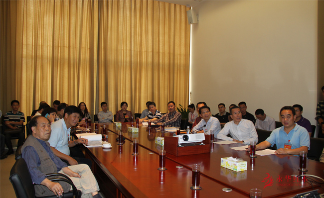 永华红木家具销售经理杨军(左排右一)在会上作项目建设汇报工作