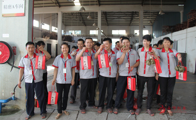浓浓的粽香弥漫在永华红木家具(新浪微博)厂区内,传递着节日的喜庆。有人在说道着粽子的储存期,有人在分享着各地包粽子的材料,如竹叶、香蕉叶、冬叶等,还有人在构思着与谁分享这节日的礼物……针对这带着浓郁文化韵味的“舌尖上”的美味,每个人“心尖上”都有着自己的蓝图,脸上都洋溢着甜甜的笑意。