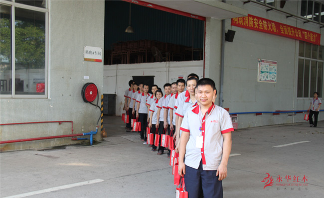 6月19日下午5点半,在永华红木家具厂区,全体永华人提着公司派发的节日慰问品,井然有序地打卡下班,脸上带着欢乐的笑颜。一个个印有“永华家具”、“知木知永华”等字样的红色手提袋,随着永华人的长队“一”字排开,格外引人注目。