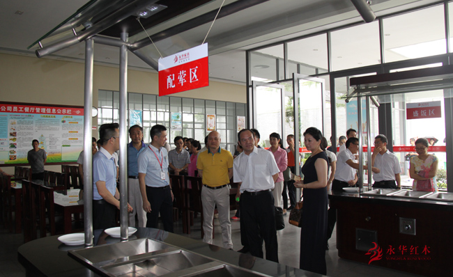 与会领导和代表参观干净整洁、井然有序的红木安装车间