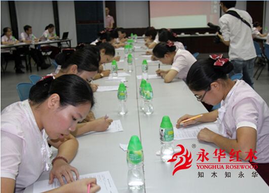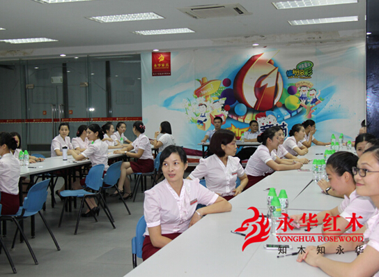 2015年8月4号晚,在永华红木家具培训室,以“酷暑一抹红,知木知永华”为主题的销售知识竞赛正式拉开序幕。比赛开始前,各参赛选手兴致盎然、热烈讨论,为比赛做好充分的准备。她们妆容精致、举止端庄,跃跃欲试,用青春挥洒激情、用知识展示自我,以自信的态度迎接挑战。