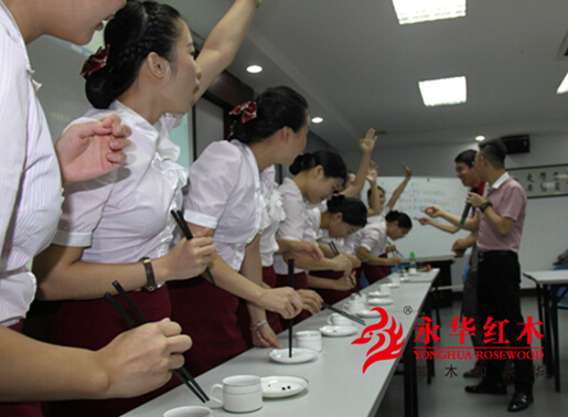 在比赛过程中,选手们积极参与,欢乐互动,现场欢笑声不断,在这其乐融融的气氛中,选手们不仅增进了彼此之间的友谊,学到了更多红木和礼仪知识,还激发了员工的参与积极性,培养了员工团结协助的团队精神,可谓一举多得。