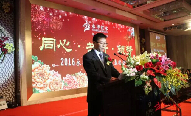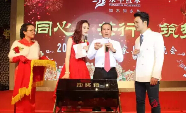 首先,永华红木家具总经理赖荣达在晚会致辞,在过去的2015年里,永华一直坚持“精品生产、精英团队、精益管理”的核心经营理念,及“诚信聚人心,服务赢市场”的战略思想,迎合市场需求和时代发展脉搏,把永华上升为一个民族品牌。