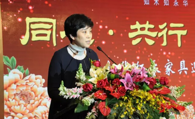 紧接着,由广州市家具协会秘书长陈允发言,她对永华红木家具2015年在陈达强董事长的带领下取得的成绩表示祝贺,并对永华长期以来关心和支持协会发展表示感谢。同时也祝愿永华2016年更加辉煌。