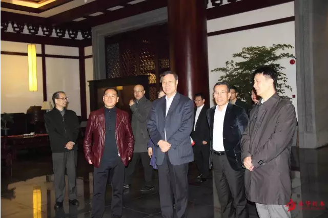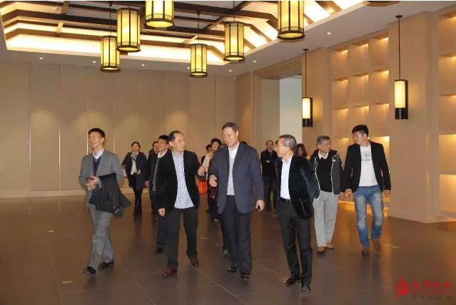 广州市家具协会会长、永华红木家具董事长陈达强带领来宾们参观永华艺术馆