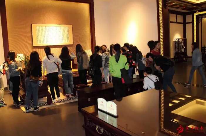女院同学在永华艺术馆红木文化体验厅感受博大精深的红木文化