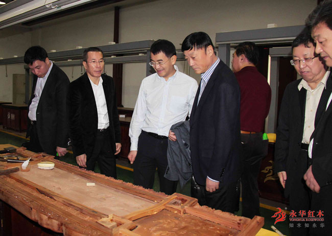 随后,在永华红木董事长的带领下,来宾们来到了红木原材料区、榫卯展示区、新老家具展示区、观光工艺走廊、木韵檀雕工艺区等,对永华红木精品家具的生产流程有了详细的了解,并领略了中国古老文化的深刻内涵。