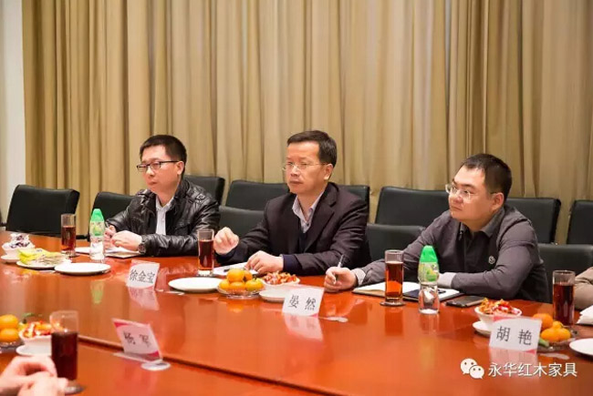 中国工经联工业经济研究中心副主任徐金宝表示,到永华红木这一行收获很多,永华是一个专注做红木家具的企业,其31年如一日的精神很让我们感动,很看好永华企业未来的发展。另外综合处处长杨志安则谈到,通过今天的调研,深刻体会到红木家具与文化的结合,但仍须继续加强品牌影响力,注重品牌建设,推动品牌快速发展。