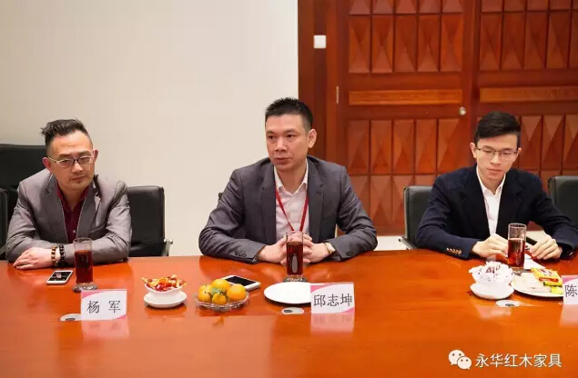 座谈会上,永华红木副总经理邱志坤简单介绍永华企业运行的具体情况,永华一直坚持在红木家具领域长足发展。2016年在石碁镇政府、番禺区政府、广州市政府的大力支持下,永华带头构建集文化、旅游、商业销售于一体的石碁红木文化小镇。另外,永华在人才培养及用人方面注重打造家文化,培养员工良好的品德和职业素养。