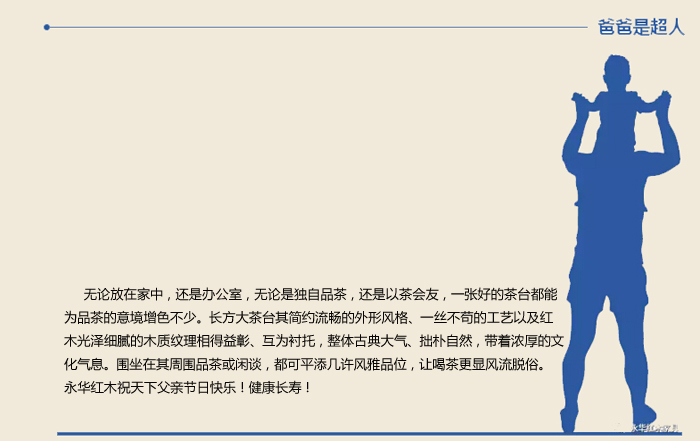 明式太师椅,是父亲们最受欢迎的家具之一。通体为老挝酸枝。弧形椅圈,自搭脑至扶手处呈S形,颇具舒适感,足间设步步高赶枨,寓意步步高升。设计简洁大方,线条优美,极具古朴淡雅之美,于光素之间,溢悠悠明式风韵。