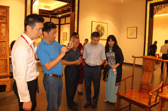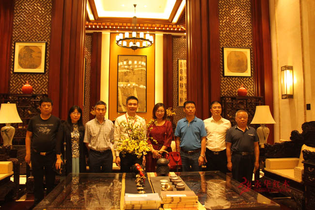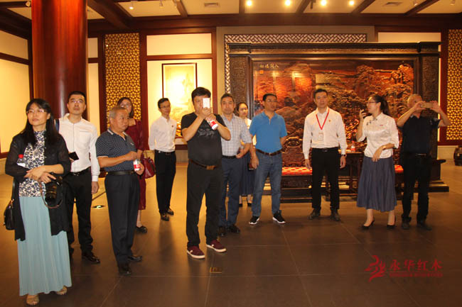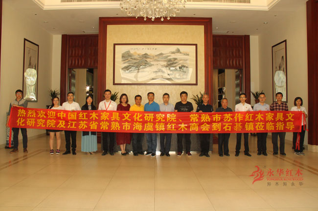 10月26日,江苏省常熟市海虞镇、中国红木家具文化研究院、海虞苏作红木家具商会考察团走进永华红木,考察以永华企业为龙头的红木文化特色小镇。由石碁镇党委委员、副镇长许兆玲,石碁古典红木家具行业协会会长、永华红木副总经理邱志坤,永华红木副总经理陈国伟热情接待,并陪同参观永华艺术馆、观光工艺走廊,感受精雕细刻的红木文化。