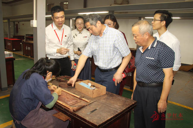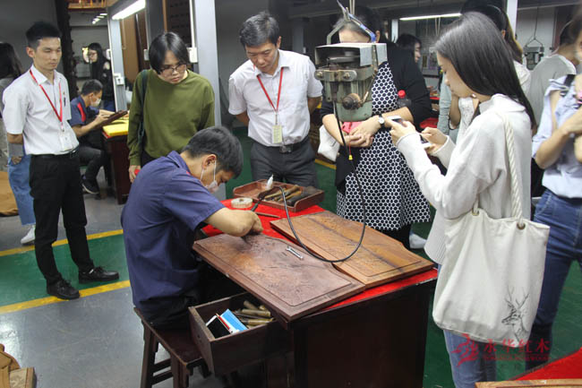 10月24日,华南农业大学珠江学院设计学院师生一行莅临永华红木参观交流。师生们参观永华艺术馆、观光工艺走廊,观看学习红木家具的制作工艺,体验博大精深的红木文化。现场一榫一卯、一雕一刻的传统工艺让同学们惊叹不已,啧啧称赞。