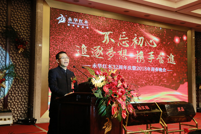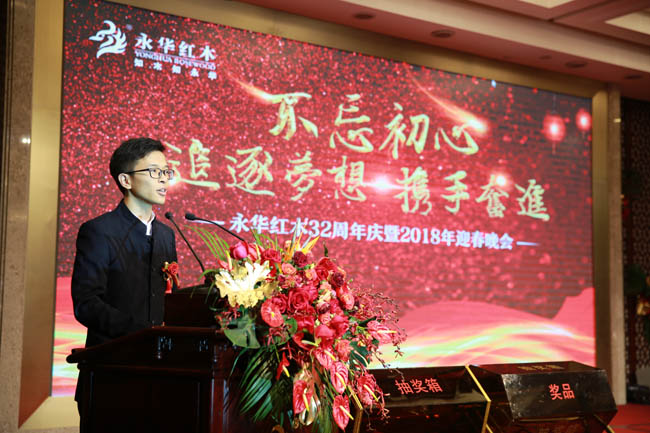 首先,永华红木总经理赖荣达先生在晚会致辞,对来宾们的到来表示热烈的欢迎并送上新年祝福。