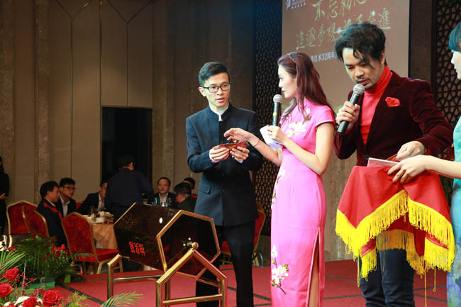 永华红木接班人陈国伟先生代表永华公司向在座的领导嘉宾、全体永华家人及社会各界朋友们致以最崇高的敬意、最衷心的感谢和最真诚的祝福。