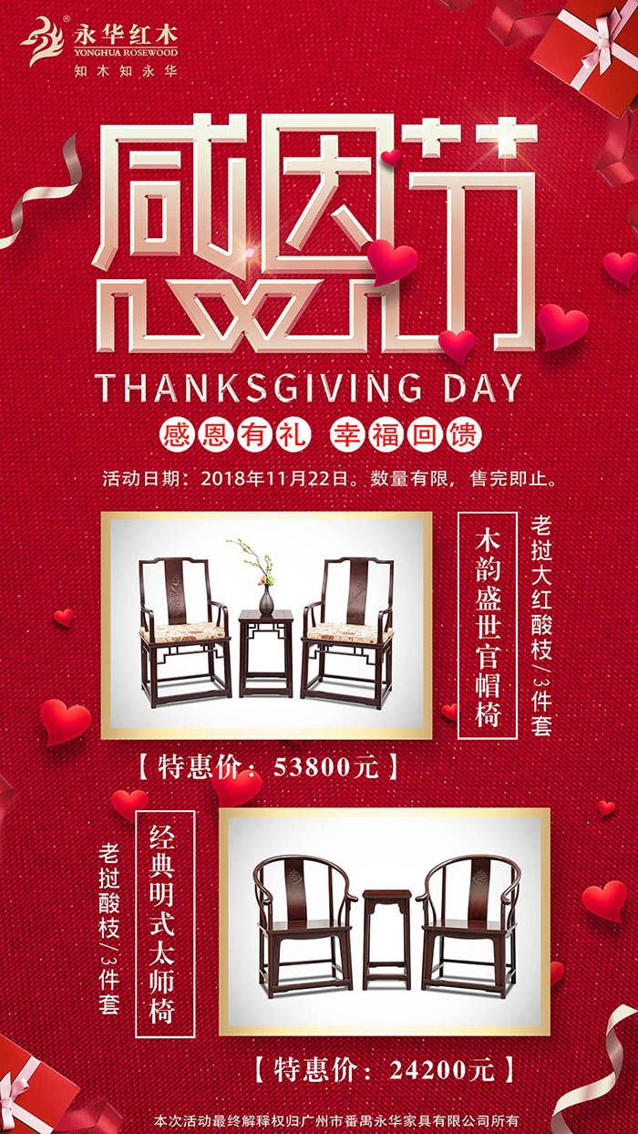 今日小雪,又是感恩节,知恩于心,感恩于行,不一定每一次的感恩都能轻易说出口,若爱在心口难开,不妨用实际行动让感情升温。感恩相伴,家更温暖。来永华红木挑选一份感恩节礼物,感谢那个你最爱的人。