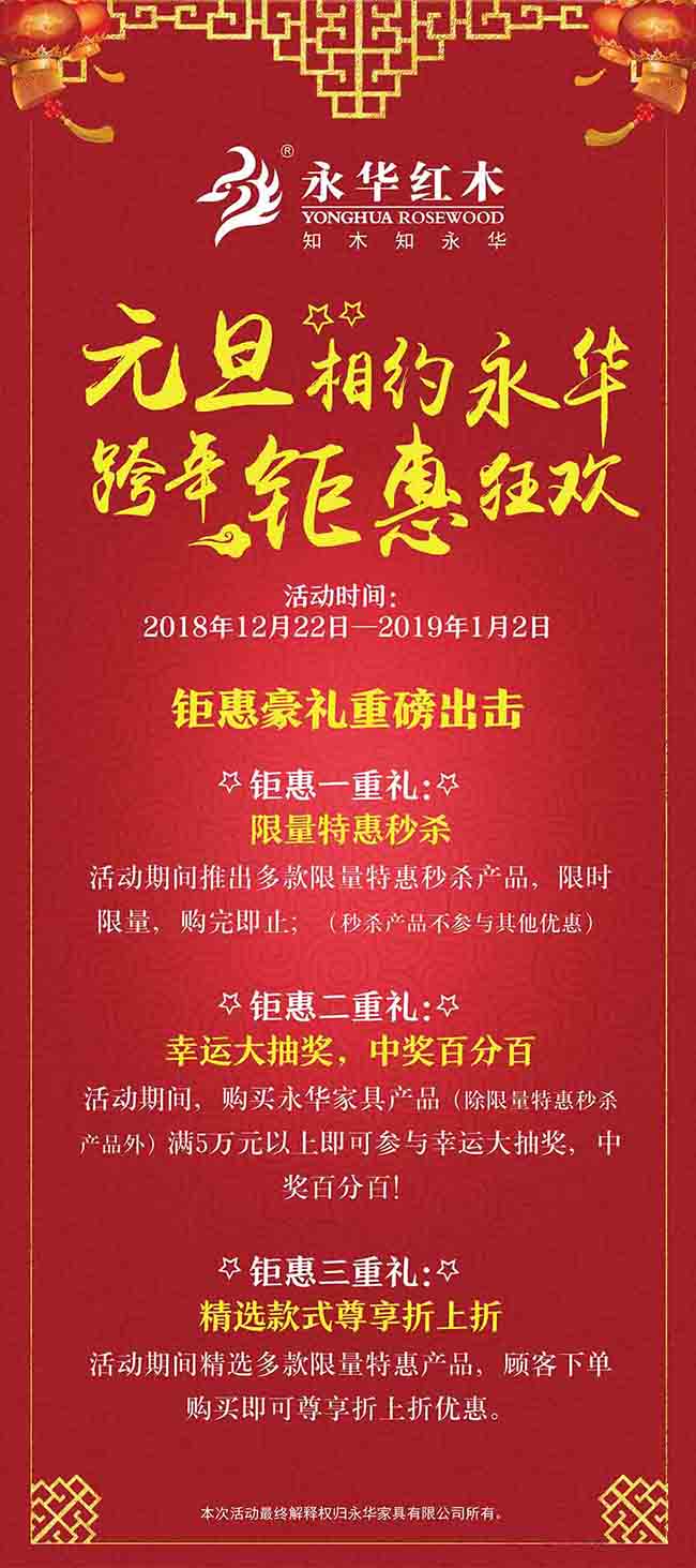 “元旦相约永华,跨年钜惠狂欢”回馈迎元旦活动已于12月22日火爆开启,活动吸引了众多新老顾客前来品鉴。活动现场,热闹非凡。顾客们在店内相谈甚欢,带着惊喜与笑颜前来,带着满意与称赞而去。