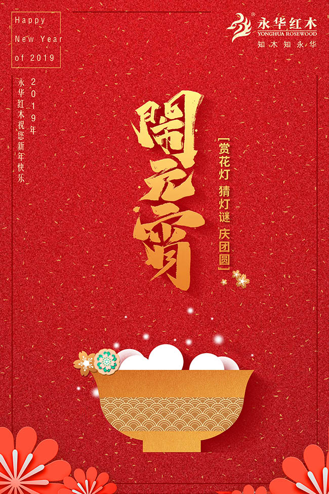 永华红木家具在此祝愿各位家庭像汤圆一样,团团圆圆;爱情像汤圆一样,甜甜蜜蜜;心态像汤圆一样,越滚越大;财源像煮汤圆一样,滚滚而来;朋友像汤圆一样,实实在在。同时希望大家往后余生的日子里过得甜甜美美的,圆圆满满的。