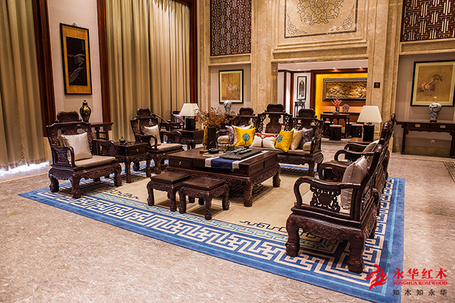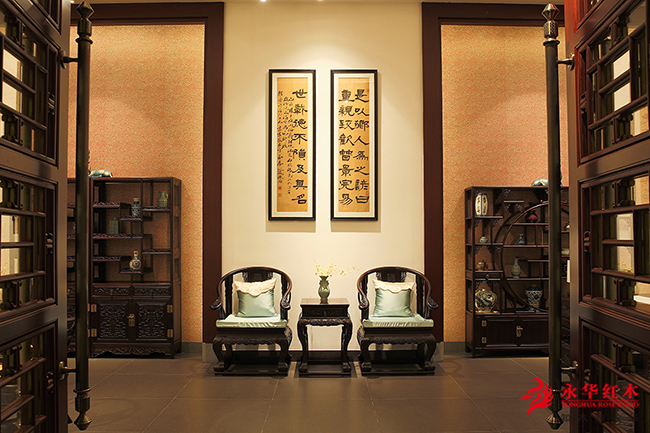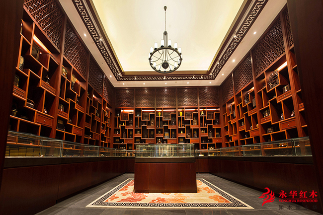 馆内装潢宏大华丽,红木藏品丰富,展示了各式各样的名贵红木家具,客厅、餐厅、书房、卧室等系列家具产品超800件,古色古香的红木家具上添加几许精致的软装搭配,古典与时尚的碰撞,越发衬托出古典家具简约、大气的韵味。
