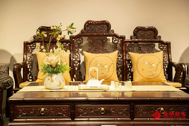 永华红木家具以“传承千年家具经典,创新世纪家具文化”为宗旨,沿袭千年传统红木家具制作工艺,以沉稳的体态、温润的触感、优雅的色泽、精湛的技艺,阐释居住空间的雅致空灵,为您打造全新的禅意家居生活。