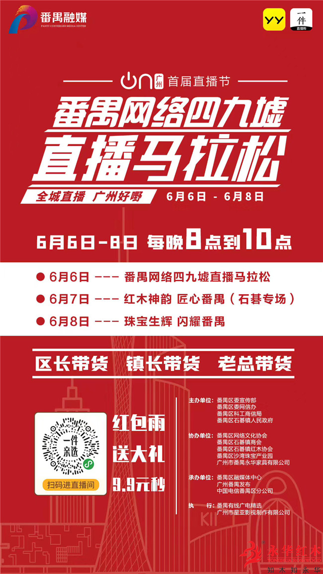 6月7日(明天)晚,“红木神韵·匠心番禺”石碁红木专场直播活动将在永华艺术馆拉开帷幕,番禺区区长、石碁镇镇长都将亲临直播间,为石碁红木代言,亲自推荐石碁红木家具产品。