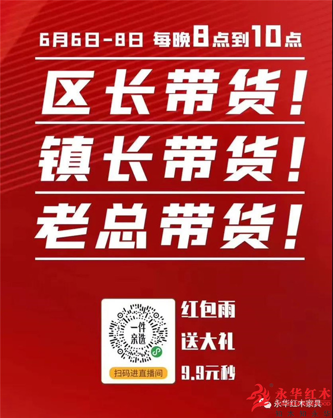 6月7日(明天)晚20:00,锁定石碁红木专场直播间,永华红木约定你!
