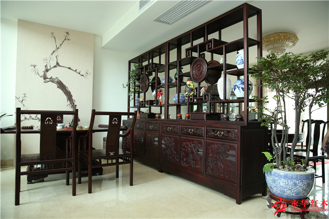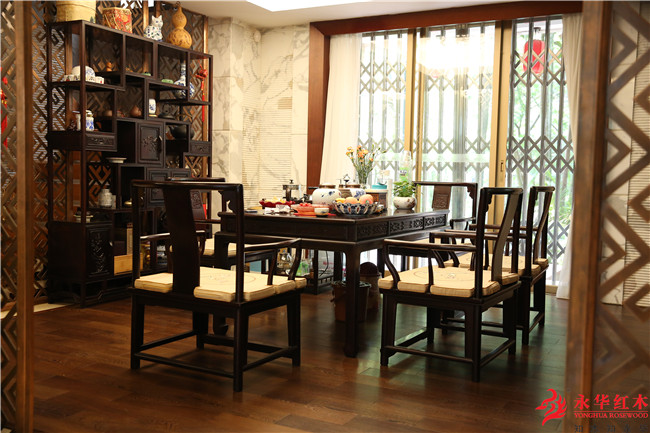 永华红木家具产品以“高端艺术品”定位为指引,在家具制作环节上,永华红木严守传统红木家具制造工艺: