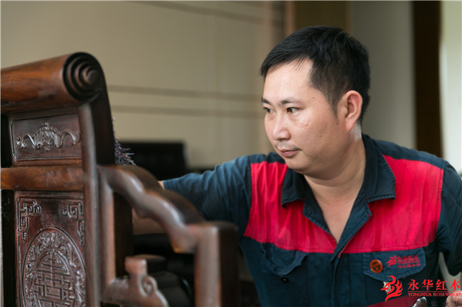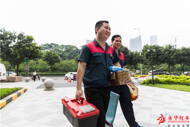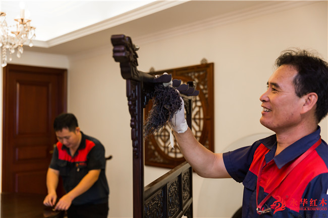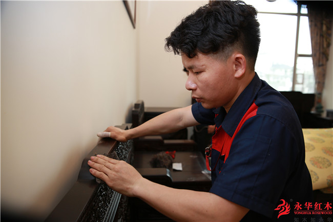 无论您身居何地,永华服务团队都会上门为您的红木家具保驾护航。”