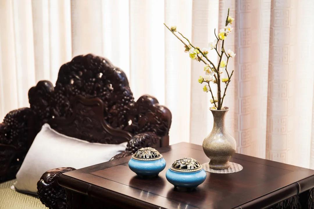 在中式生活空间中,倚靠古典家具,与友人谈诗论道,与佳人低头细语,举手抬头之间,感受香烟袅袅,在赏画、插画间感悟古人的文雅气息,再抿上一杯香茶,活出属于自己的一身诗意。