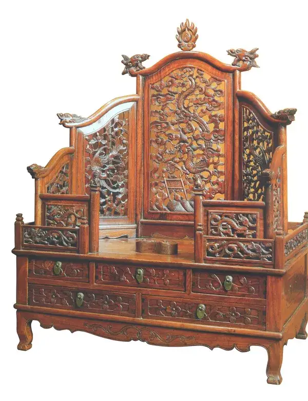 卷书造型,是最传统的一种意象造型美学,其以文人之书卷为形,寄寓意于其神韵。其常用于传统红木家具之椅脑设计,如宝座或椅子正中出现向后卷转的部分就叫“卷书”。卷书造型在家具搭脑上的运用刚好迎合了人体之颈椎造型,当人置身红木家具中时,巧妙的卷书造型,能让人的颈椎得到舒适的依托,让肌肉放松,血液通畅,从而达到养生的功效。