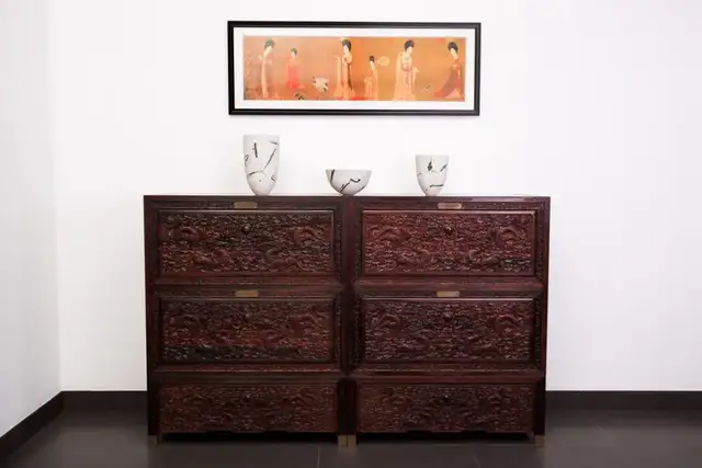 永华家具 加高雕龙画柜 材质:大红酸枝 尺寸:108.5cm*57.5cm*183.5cm