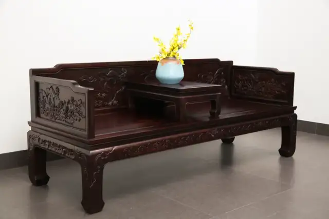 永华家具 雕荷花罗汉床材质:大红酸枝 尺寸:198cm*75cm*80cm