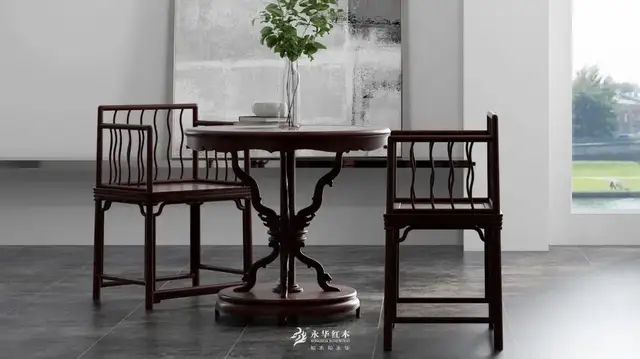 永华家具 螭龙纹小圆台 材质:巴里黄檀(酸枝) 尺寸:82cm*82cm*75cm